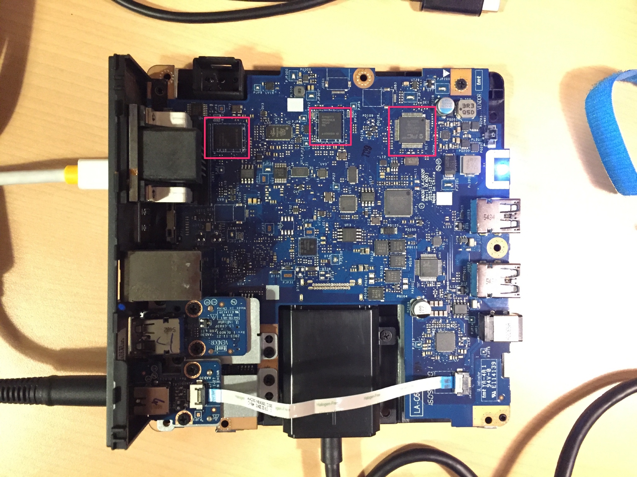 ▲带电测试几分钟, 红框内的芯片触摸温度50℃+
